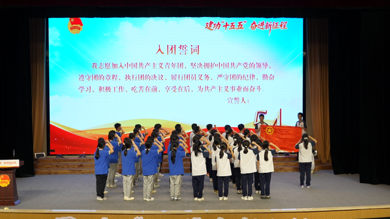 在“青春誓言”示范入团仪式中,青年党员代表为40名新团员颁发了团章、团员证,佩戴团徽,老团员代表带来新团员庄严宣誓,齐唱团歌。团徽闪耀在胸前,象征着荣誉与责任,共同见证这场青春的盛会,感受青年学子信仰传承的力量。